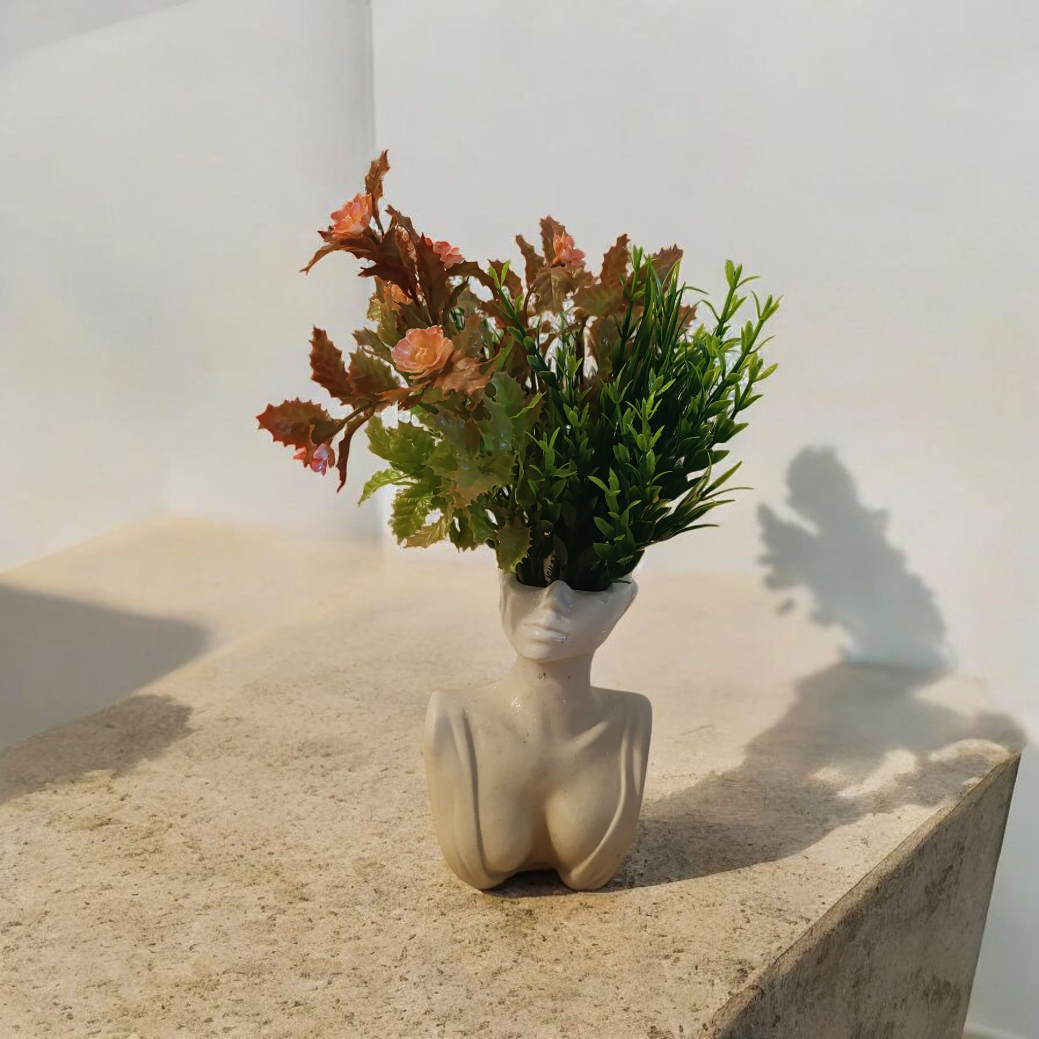 Sculpté en forme de buste féminin, ce contenant raffiné est bien plus qu’un simple objet décoratif : il accueille vos plantes naturelles ou artificielles avec style.